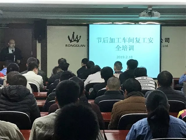 為了體現(xiàn)公司對(duì)安全生產(chǎn)的重視,2月20日,榮冠總部也統(tǒng)一組織了全體員工參與節(jié)后復(fù)工安全培訓(xùn)會(huì)議。