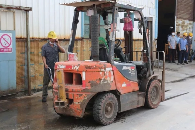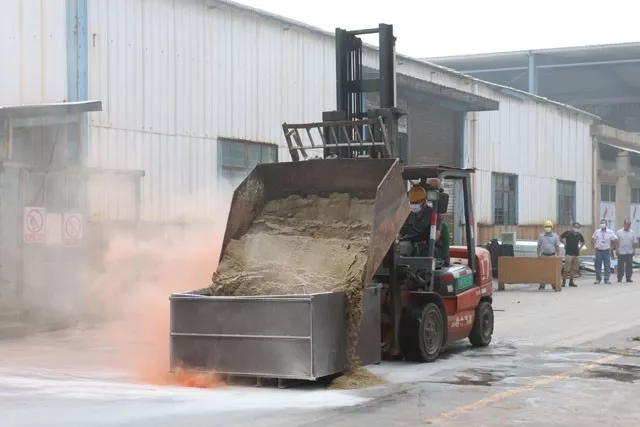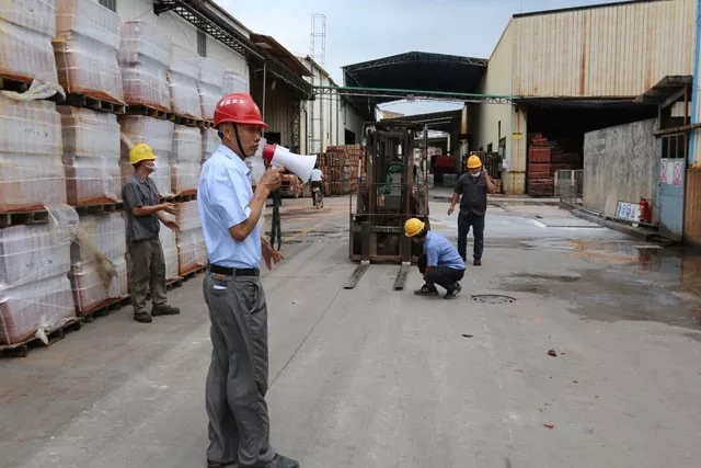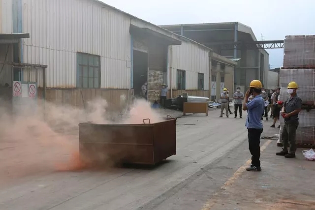 本次消防演練按照預定的方案,有序、緊張地進行。主要是應對柴油泄露、柴油火災或爆炸、叉車意外傷人等突發情況進行模擬教學演練。
