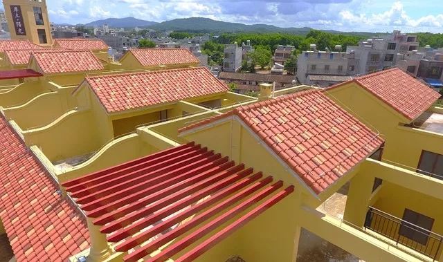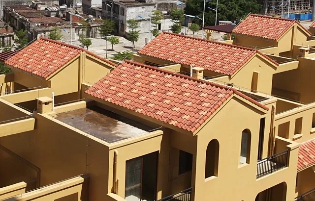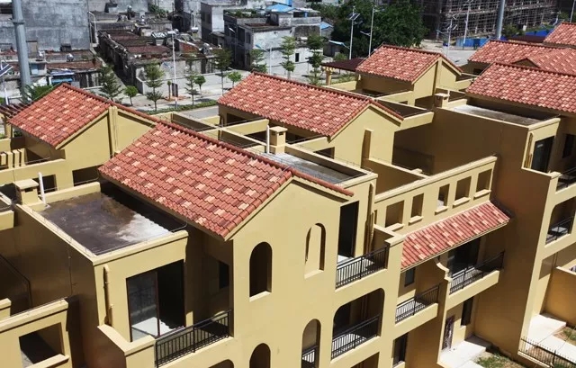榮冠西瓦具備隔熱好、耐久性、色彩鮮艷等諸多功能和特色,造型起伏多變,富有古典的歐式風味,鋪蓋后自然高雅,格調獨特,是各種中高檔酒店別墅、樓宇亭臺、大型商業中心、市政工程等建筑的首選屋面裝飾材料。