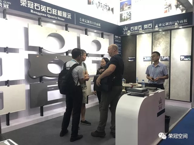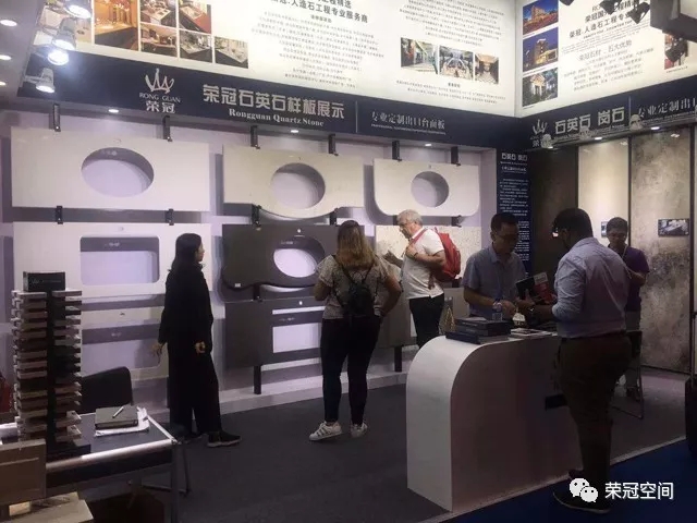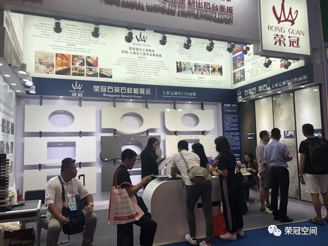 作為人造石工程專業服務商,榮冠石材擁有十多年積累的豐富生產加工經驗,并使用國外引進的先進生產設備,確保產品性能穩定,工藝品質卓越。在本屆廣交會中,榮冠石材展示出臺面板的設計加工各個流程,并通過臺面板異型切割開孔組合等精細工藝展示,體現出榮冠在精加工方面的雄厚實力,獲得了觀展客商的一致好評。