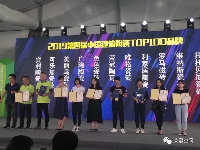 10月19日下午,首屆建筑陶瓷國潮精品論壇暨2019建筑陶瓷品牌TOP100榜單發布會在佛山華夏館舉辦。榮冠陶瓦憑借良好的市場信譽和強大的品牌影響力,一舉奪得“2019中國建筑陶瓷百強品牌”。