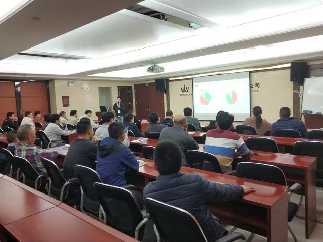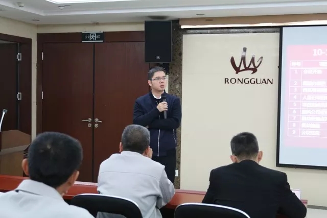 首先,精益辦主任謝武輝對各板塊項目的推進情況進行了總結,通過與去年的數據對比,肯定了榮冠精益生產開展以來所獲得的成效。同時對項目實施過程中的不足進行了總結與反省,并提出12月份的工作計劃。