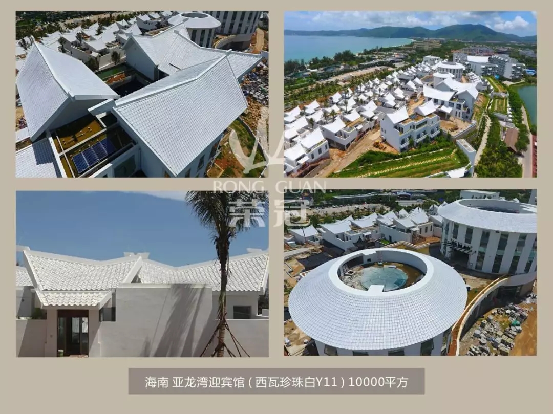 “榮冠陶瓦”秉承了中國傳統技藝,融入了西方元素,產品自然古樸、格調雅致,成為歷史和文化的載體,又是現代建筑藝術的重要元素,既可以體現中式傳統文化,也可打造西式建筑浪漫情調。產品在三亞賓館、臨沂藍海國際飯店、鄭州錦藝四季花城、蘇州建發獨墅灣、宜春天嶼花城、荊門熙龍灣、佛山依云曦城、臨沂青少年示范綜合實踐基地、武漢美聯奧林匹克學校、北京哈瑞國際學校等知名建筑工程得到廣泛應用。