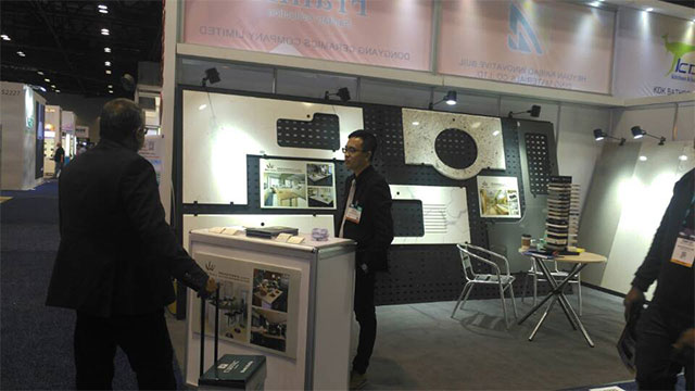 榮冠公司帶領(lǐng)旗下石英石臺面板產(chǎn)品閃亮登場,