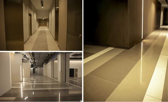 別出心裁的三色崗石鋪貼,地面平整度如一,使空間整體感大大增強,更顯高端大氣,與環境達到了很好的融合,讓人賞心悅目。