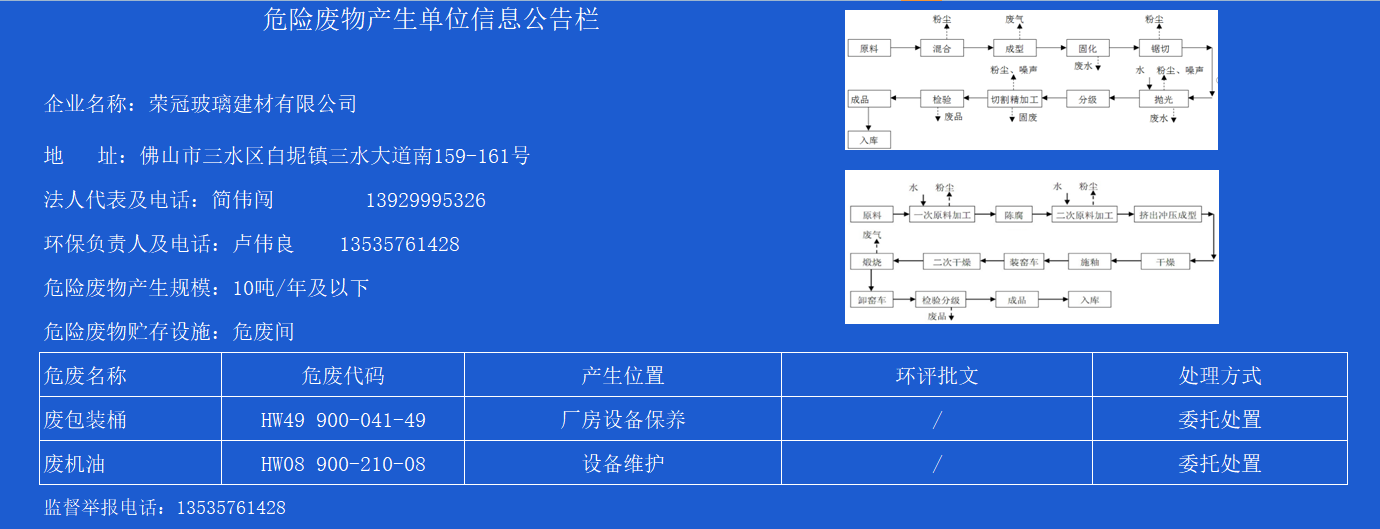 佛山市榮冠玻璃建材有限公司玻璃馬賽克、陶瓷瓦片(西瓦1#、2#)及陶土瓦片 (西瓦3線)生產(chǎn)線排污評估報告環(huán)保備案登記 |