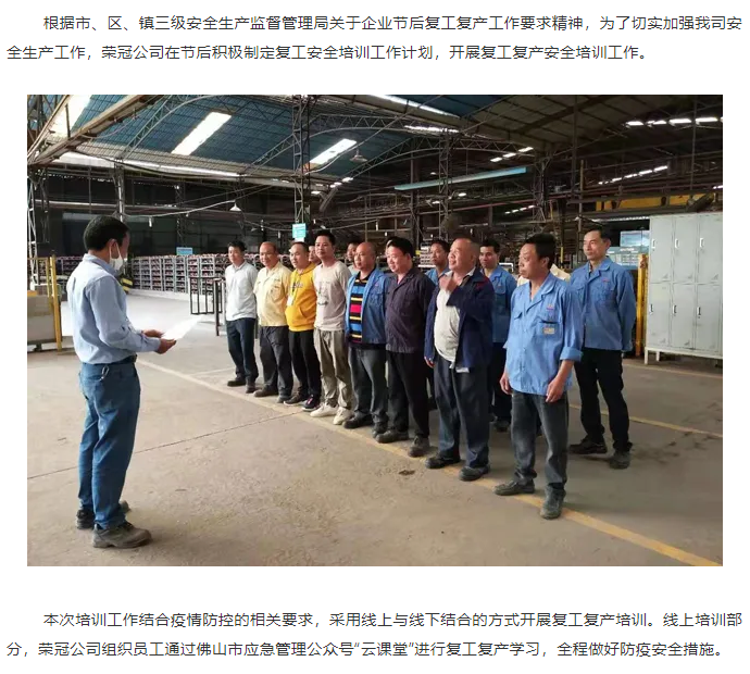 榮冠公司召開2021節后復工復產安全培訓