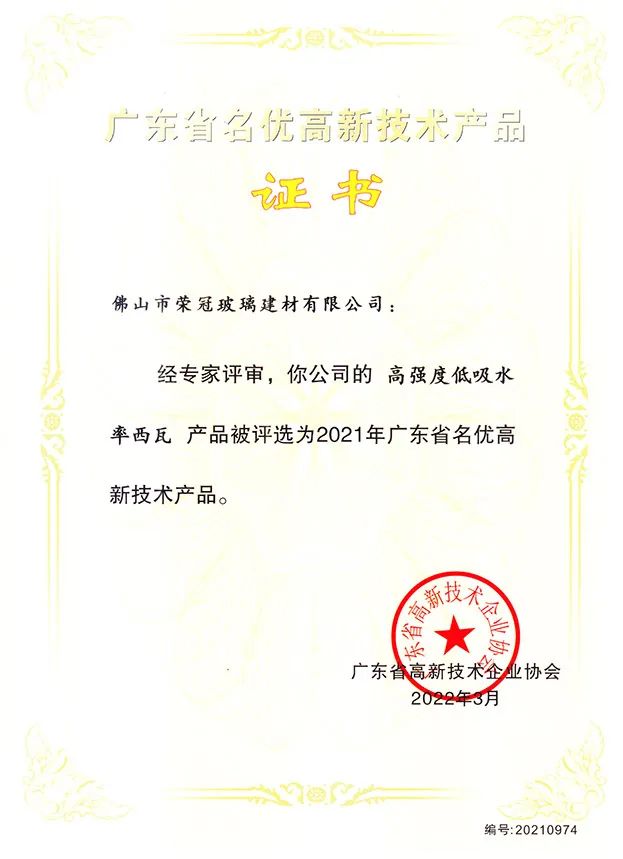 “名優高新技術產品”是對原來“高新技術產品”的延續和進一步升級,遴選出國內首創可替代進口、達到國際先進水平、達到國內先進水平的名優高新技術產品。升級后的“名優高新技術產品”評選,認定門檻顯著提高,申報難度加大,含金量也更高。榮冠西瓦產品的通過認定,標志著榮冠公司在屋面裝飾材料領域的綜合優勢和核心競爭力。